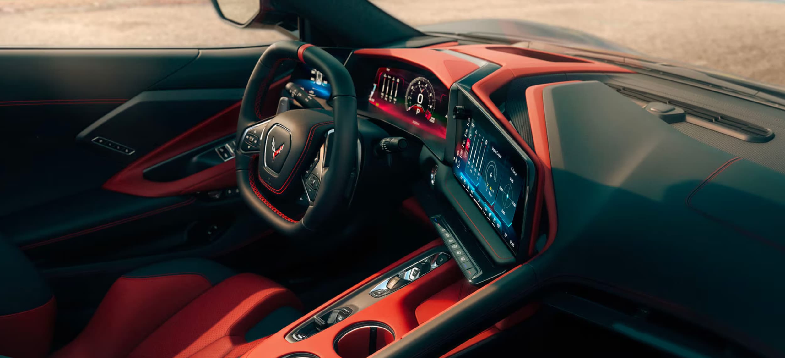Inside the 2026 Corvette Stingray, drivers will find a cockpit designed entirely around performance and comfort. The interior features premium materials, available leather and suede surfaces, and a driver-centric layout that puts controls within easy reach.