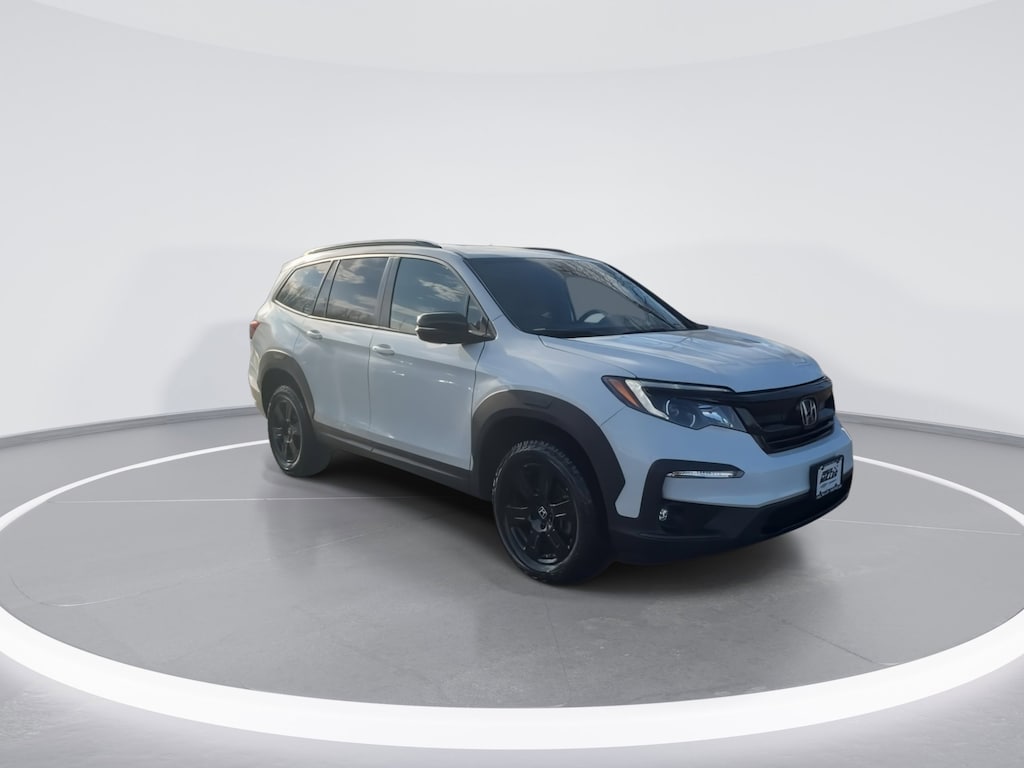 Certified. White 2022 Honda Pilot TrailSport AWD 9-Speed Automatic 3.5L V6 24V SOHC i-VTEC AWD, Navigation system: Honda Satellite-Linked Navigation System.